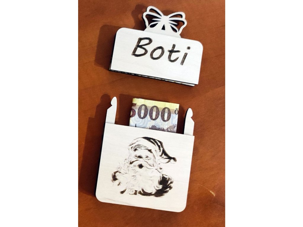 Ez egy nagyon egyedi, és rendkívül praktikus pénzátadó dobozka, ami nagyon stílusossá teszi a pénz ajándék átadását. Rétegelt lemezből készült, gravírozva.