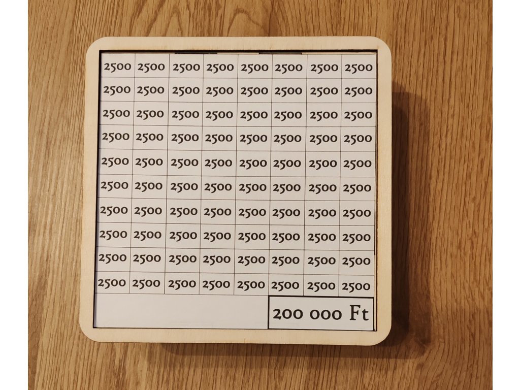 Pénzgyűjtő doboz, persely cél összegekkel gyűjtéshez